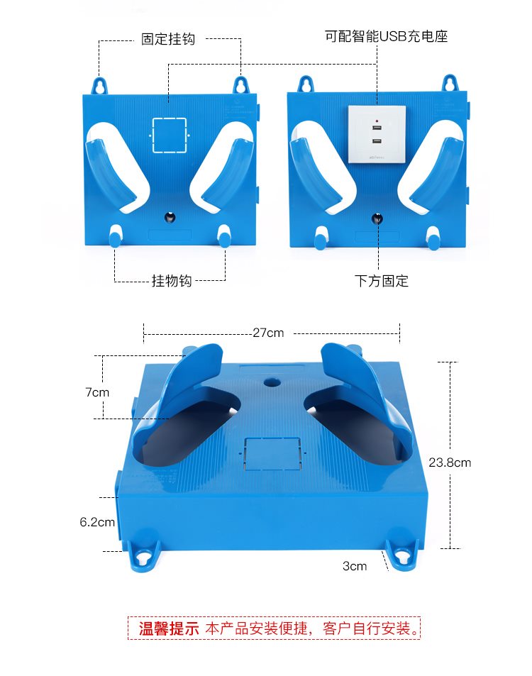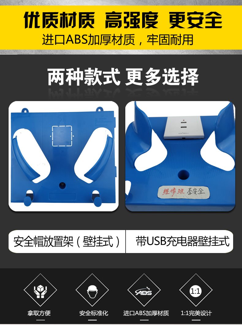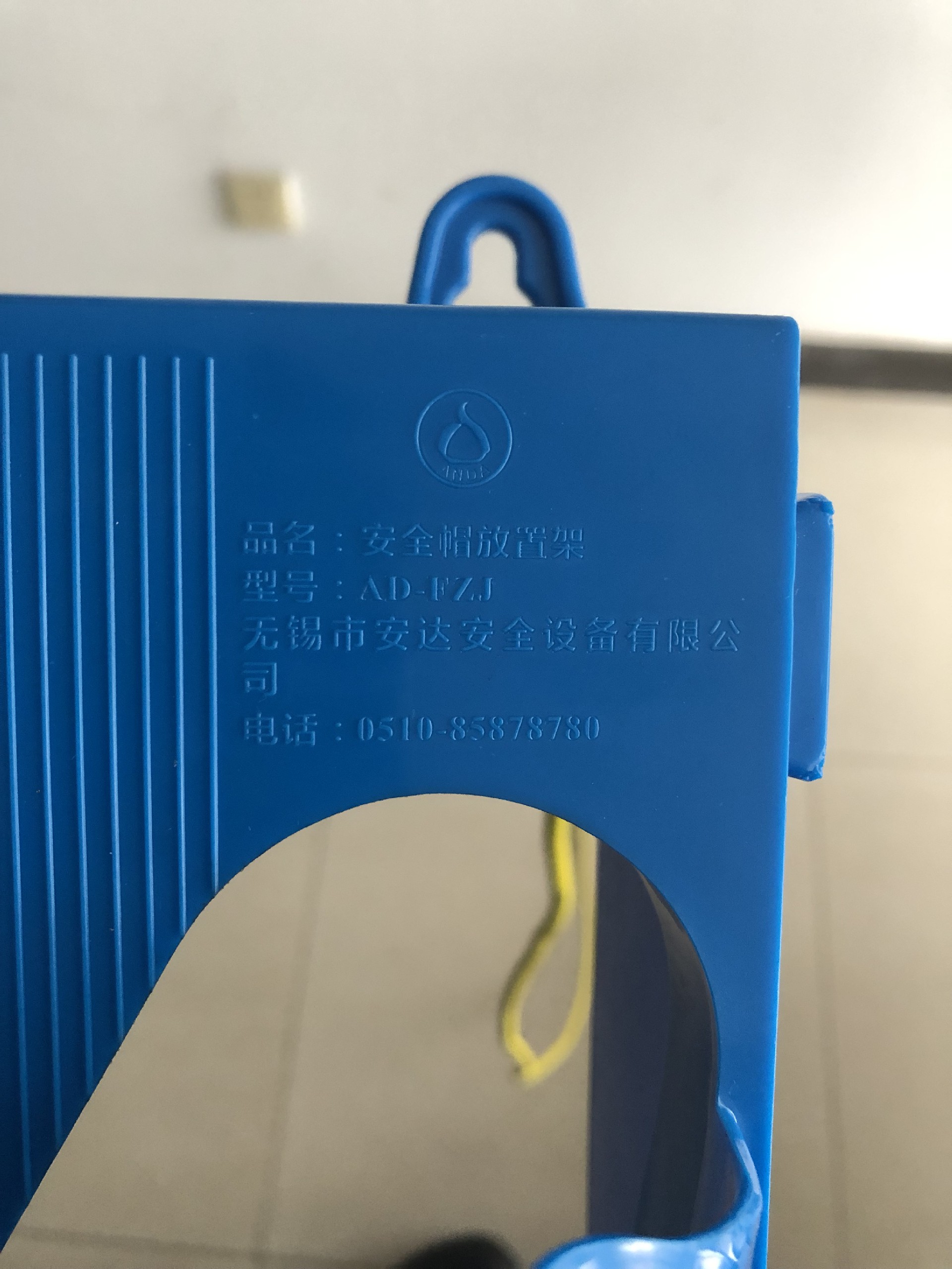 無錫安達牌安全帽放置架,ABS原料打造不含回料廢料,重量約每個200克,尺寸為47*24*6.5CM(不含表面突起掛鉤)