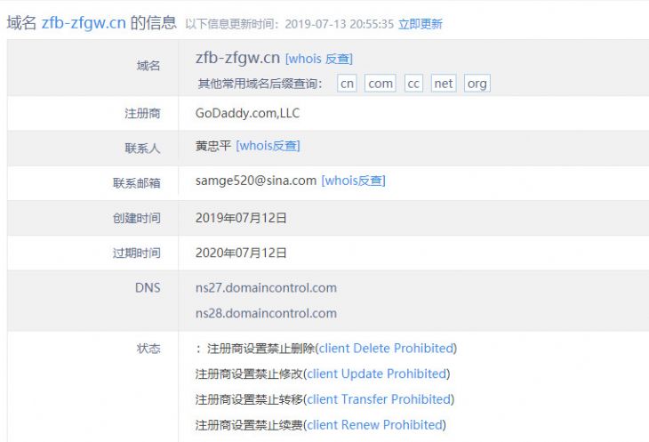 1、大多數(shù)人訪問(wèn)網(wǎng)站沒(méi)有注意網(wǎng)址的習(xí)慣,這個(gè)網(wǎng)站的域名(www.zfb-zfgw.cn)并不是支付寶或者的官方(alipay.com)域名,這也是博川一眼就認(rèn)定這是虛假網(wǎng)站的原因。查詢域名注冊(cè)信息之后發(fā)現(xiàn),果然,這是一個(gè)昨天(7月12日)才剛剛注冊(cè)的新域名,正常來(lái)說(shuō)一個(gè)正規(guī)網(wǎng)站涉及到開(kāi)發(fā)、備案、上線測(cè)試等多個(gè)流程,是不可能注冊(cè)后就立即使用的。而且,域名的注冊(cè)人為個(gè)人,所使用的注冊(cè)郵箱也是一個(gè)個(gè)人新浪郵箱號(hào)。像支付寶這樣的公司,是不可能采用這樣不正式的注冊(cè)形式的。